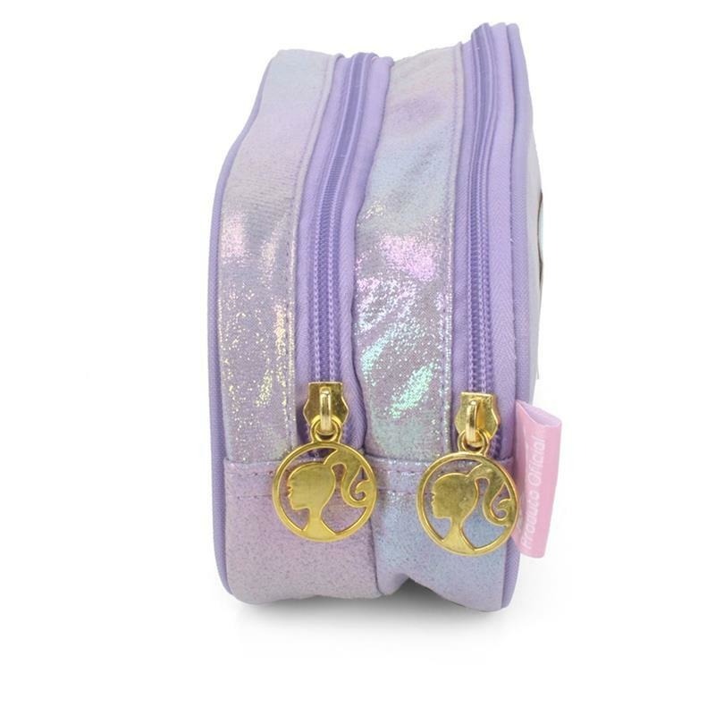 Estojo Escolar Tecido Barbie Lilás – Grande – Duplo 2 zíperes